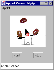 directory. You can inspect your handiwork by bringing up appletviewer in the following way:appletviewer <BDKInstallation>/beanbox/tmp/myApplet.htmlHere is what you will see: